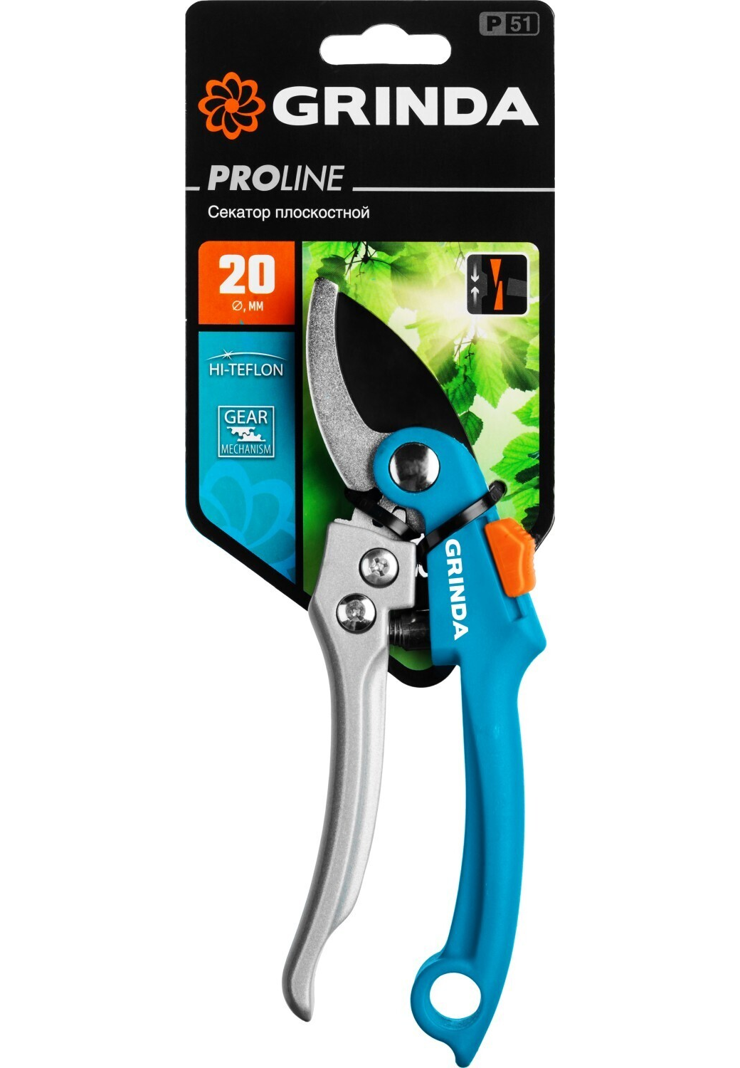 Плоскостной секатор с шестеренной передачей GRINDA PROLine P-51 200 мм c двухкомпонентными рукоятками (423451)