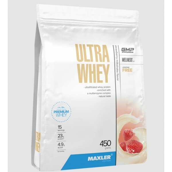 Сывороточный протеиновый концентрат Ultra Whey 900 гр (Maxler) Клубничный молочный коктейль