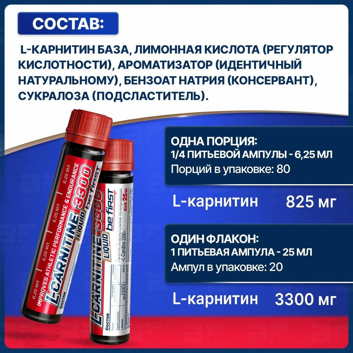 BeFirst, L-carnitine 3300, 20 ампул по 25мл (вишня)