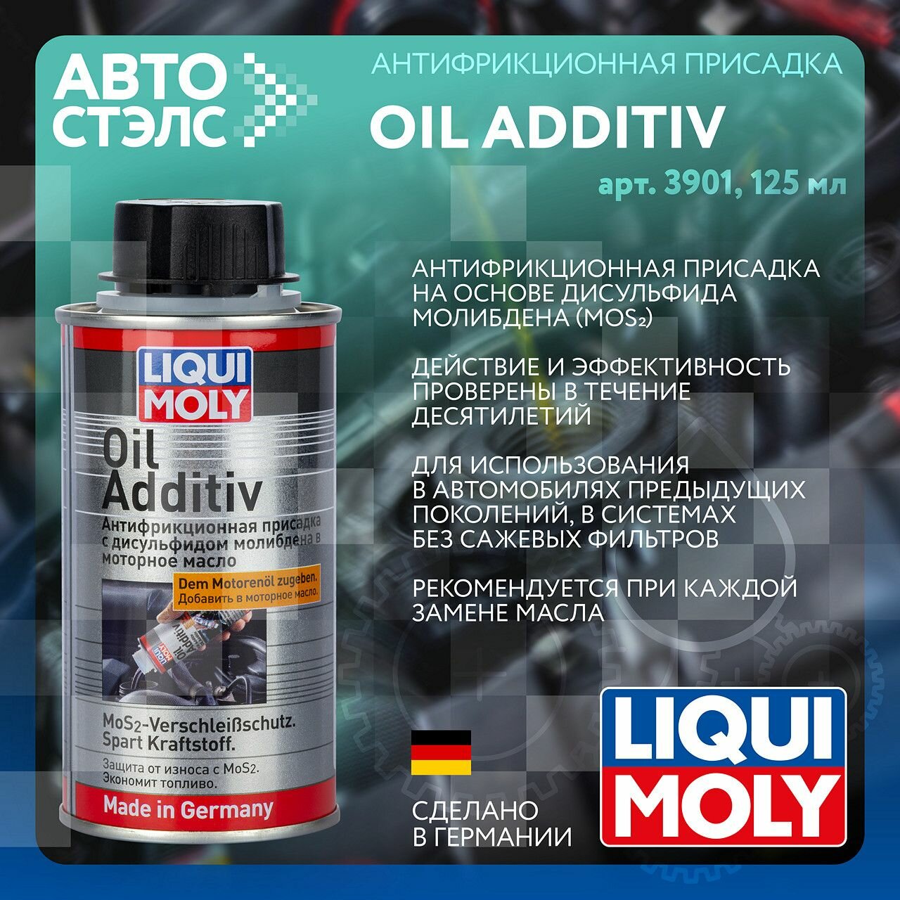 Присадка в моторное масло Liqui Moly Oil Additiv, антифрикционная, для бензиновых и дизельных двигателей, с дисульфидом молибдена, бутылка 125мл, арт. 3901