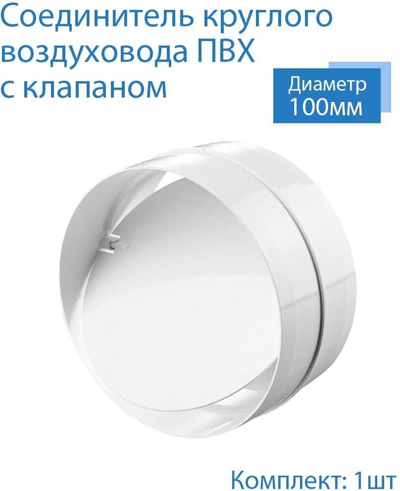 Соединитель круглых каналов с обратным клапаном D100 мм, 1 шт, 1111, белый, воздуховод, ПВХ интересное: