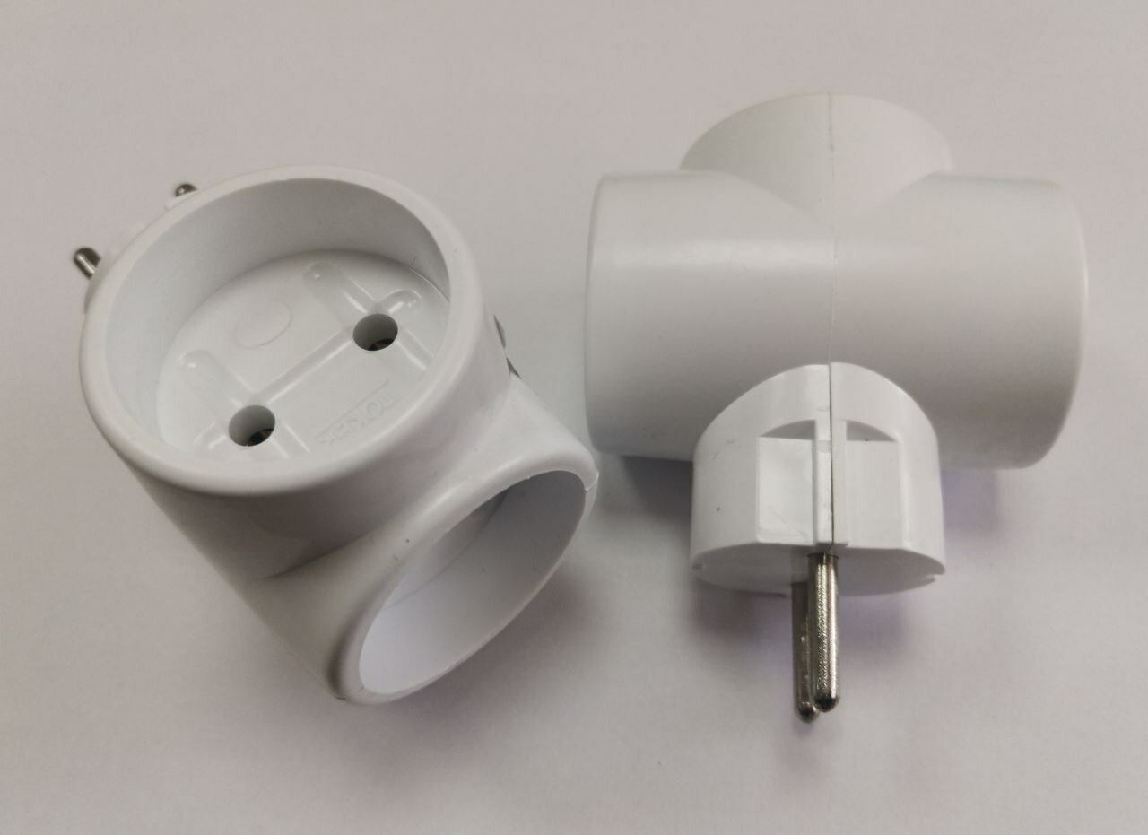 Тройник для розетки электрический с заземлением 16А, белый