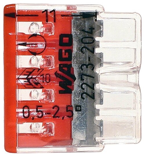 Wago 2273-204 Экcпресс-клемма, 4-проводная до 2,5 мм², (100 шт./уп.) WAGO