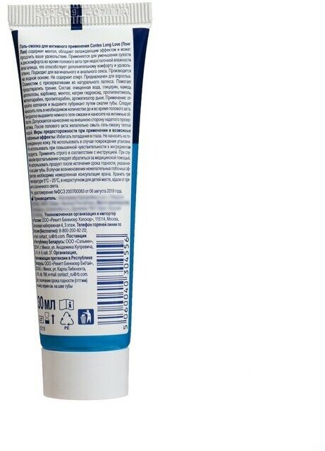 Гель-смазка Contex Long Love с охлаждающим эффектом, 50 г, 30 мл, ментол, 1 шт.