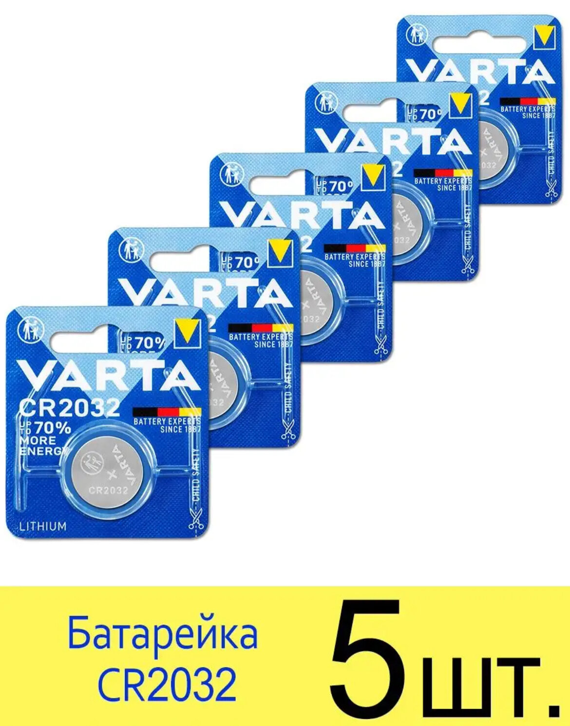 Батарейка VARTA CR2032, в упаковке: 5 шт.