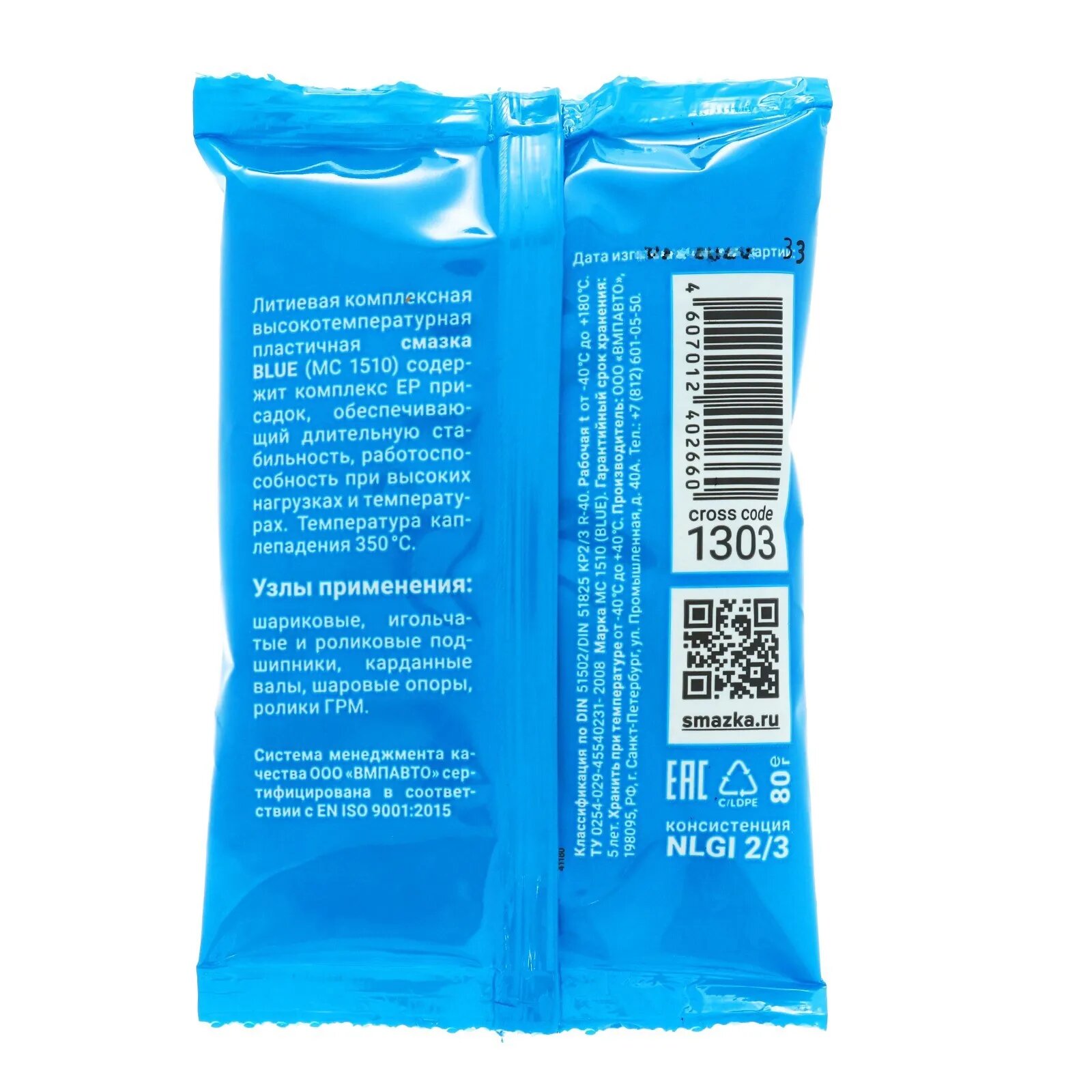 Автомобильная смазка ВМПАВТО "Blue", высокотемпературная, комплексная, литиевая, МС 1510, 1303, 80 г