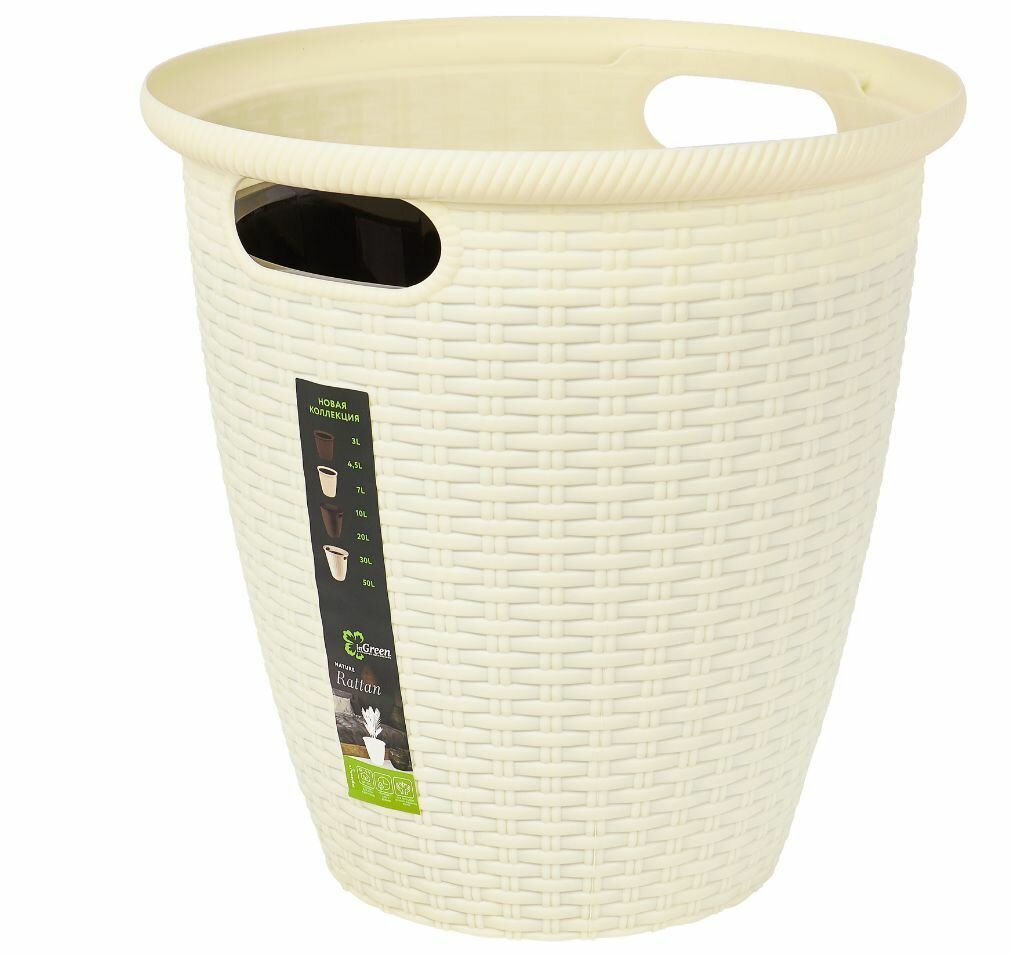 InGreen Кашпо для цветов со вставкой «Ротанг», 20 л (11 л), цвет айвори