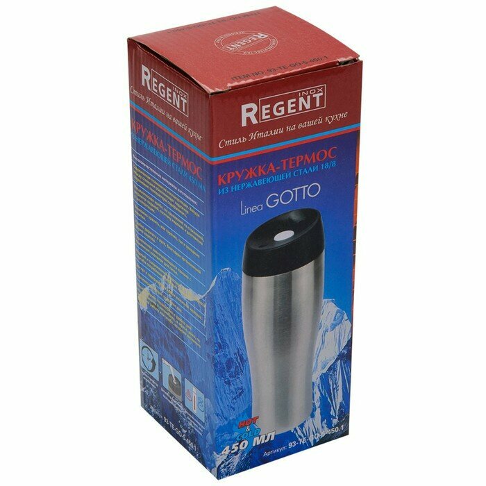 Термокружка REGENT inox Gotto , 0.45 л серебристый/черный