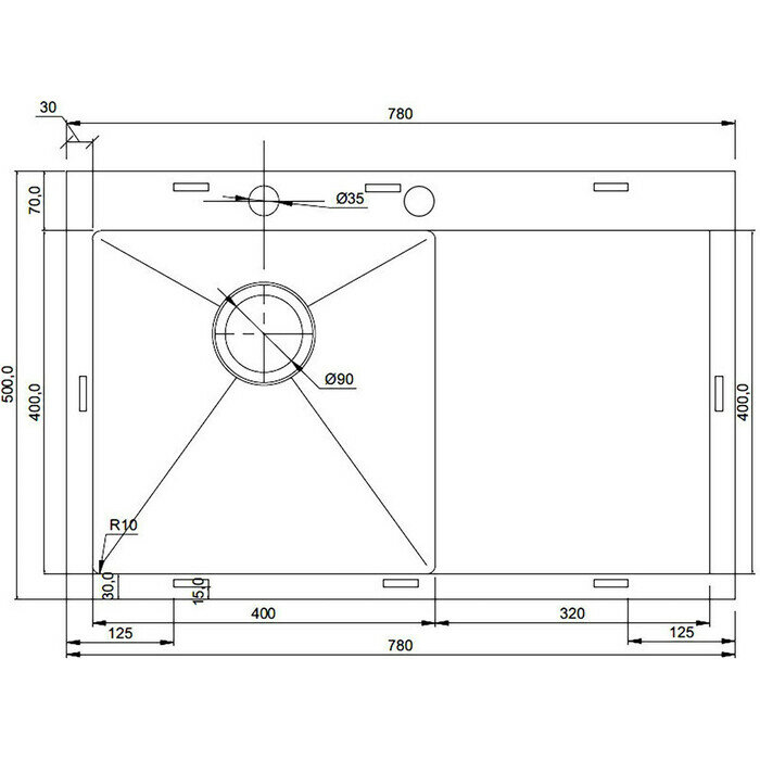 | Отверстие под смеситель | есть |