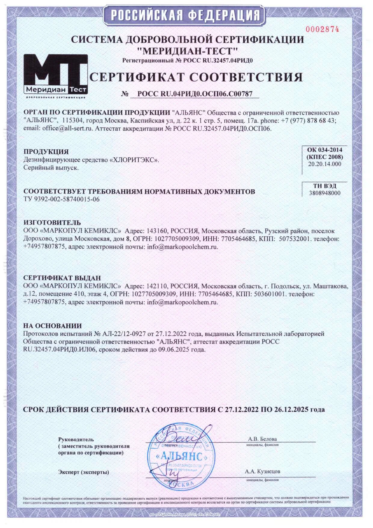Гранулированный быстрорастворимый органический хлоросодержащий препарат маркопул кемиклс Кемиклс Хлоритекс,