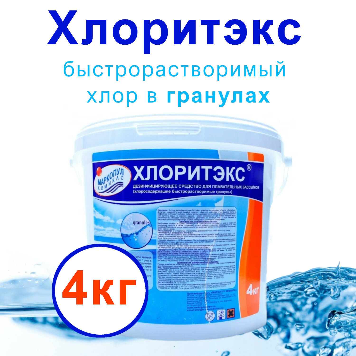 Хлоритэкс, гранулы 4кг, быстрорастворимый хлор для бассейна