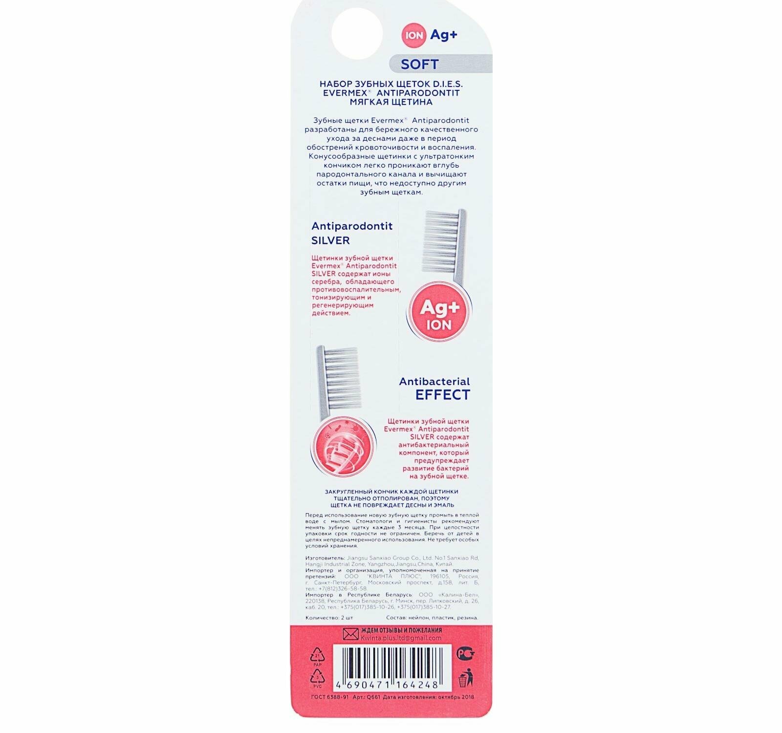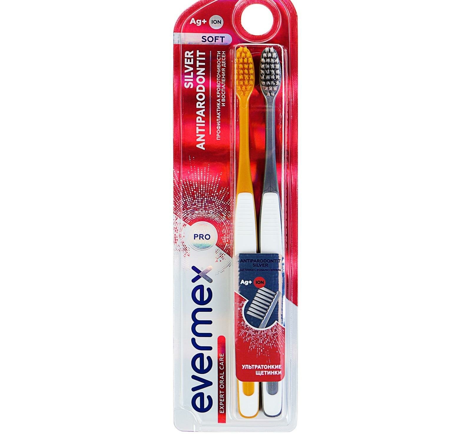 Зубная щётка Evermex Antiparodontit Silver, мягкая, 2 шт.