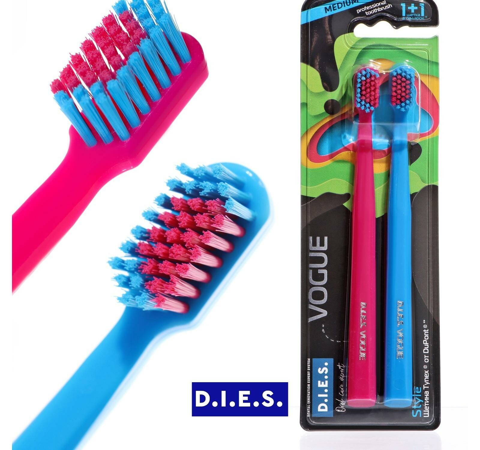 Купить D.I.E.S. Зубная щётка D.I.E.S. Vogue Style средней жёсткости, 1+1 шт.