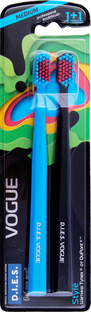 Зубная щётка D.I.E.S. Vogue Style средней жёсткости, 1+1 шт.