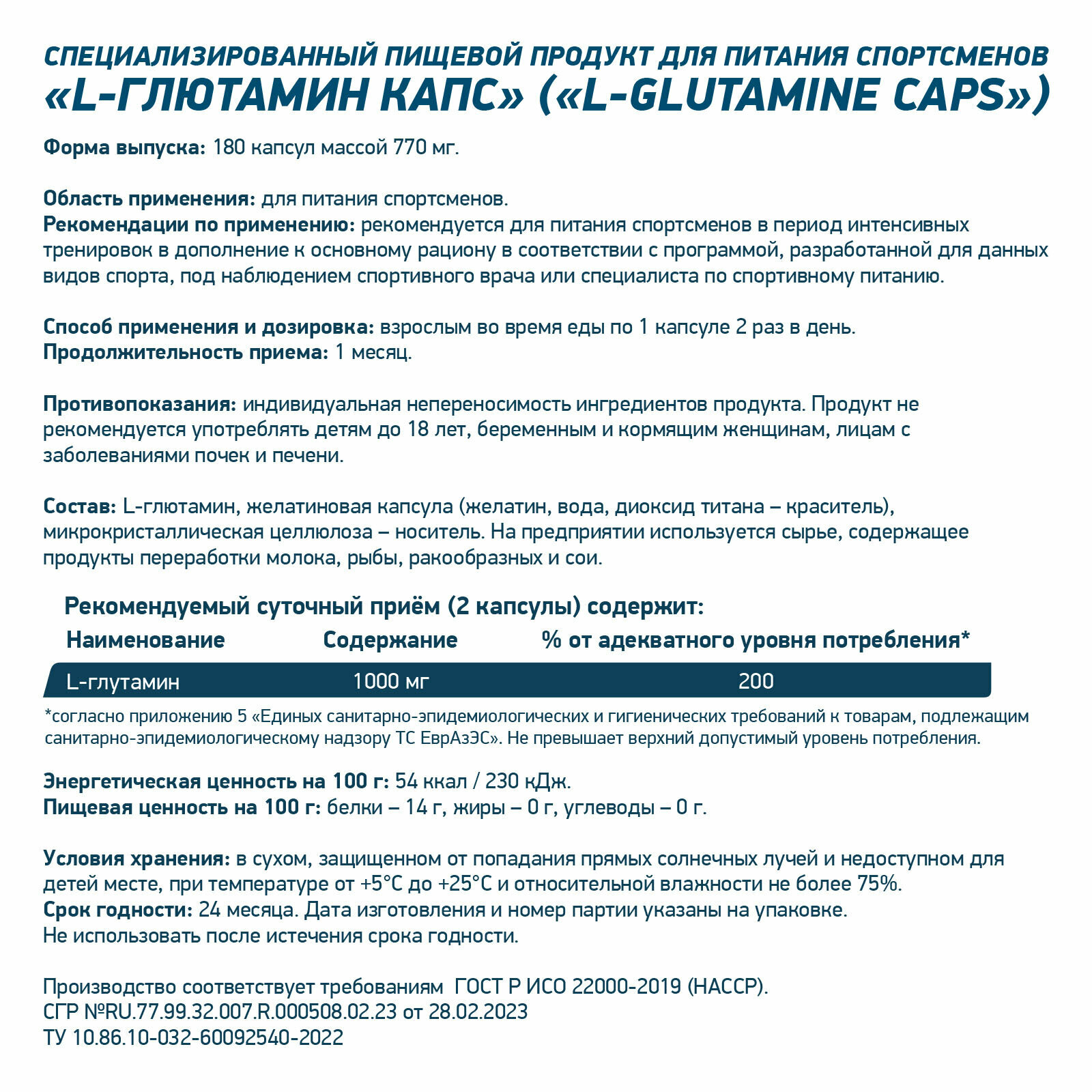 Капсулы GLUTAMINE capsules 180 cap интересное: