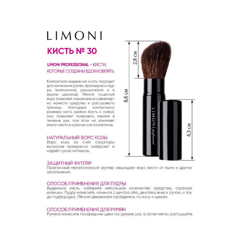 Компактная выдвижная кисть для пудры и румян №30 Professional LIMONI