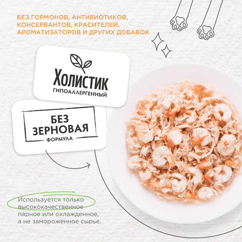 Консервы для кошек Grandorf Holistic Куриная грудка с мясом краба,упаковка 70 гр х 6шт.