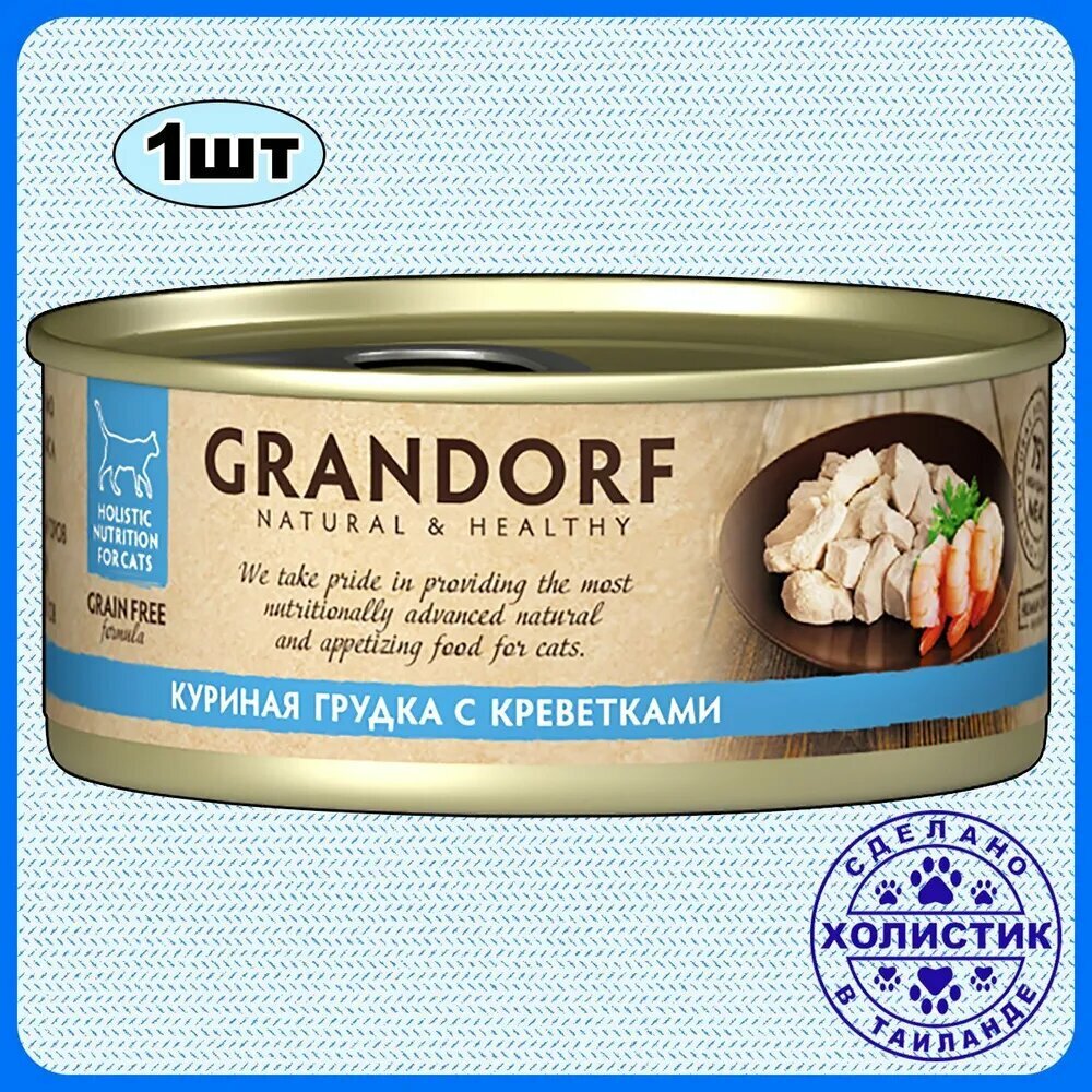 Консервы для кошек Grandorf Куриная грудка с креветками 70 гр., 1шт.