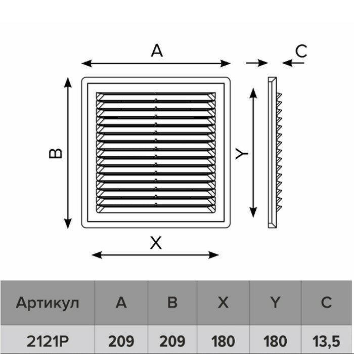 Вентиляционная решетка ERA 2121П 208 x 208 мм