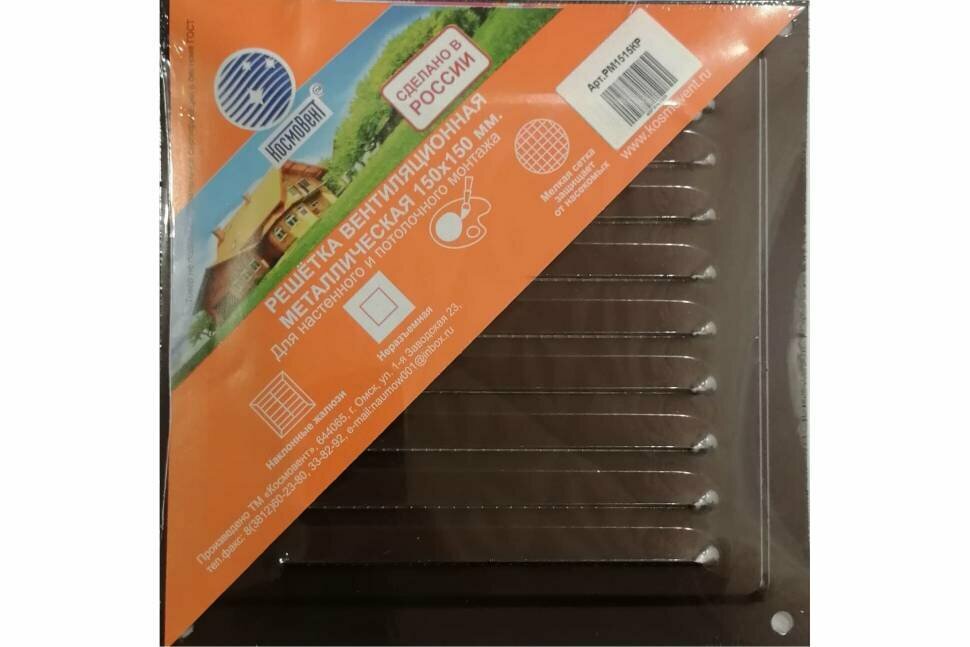 Решетка вентиляционная "КосмоВент" РМ1515КР, 150 х 150 мм, с сеткой, металл, коричневая
