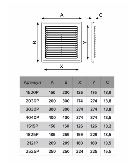 Вентиляционная решетка ERA 2121П 208 x 208 мм