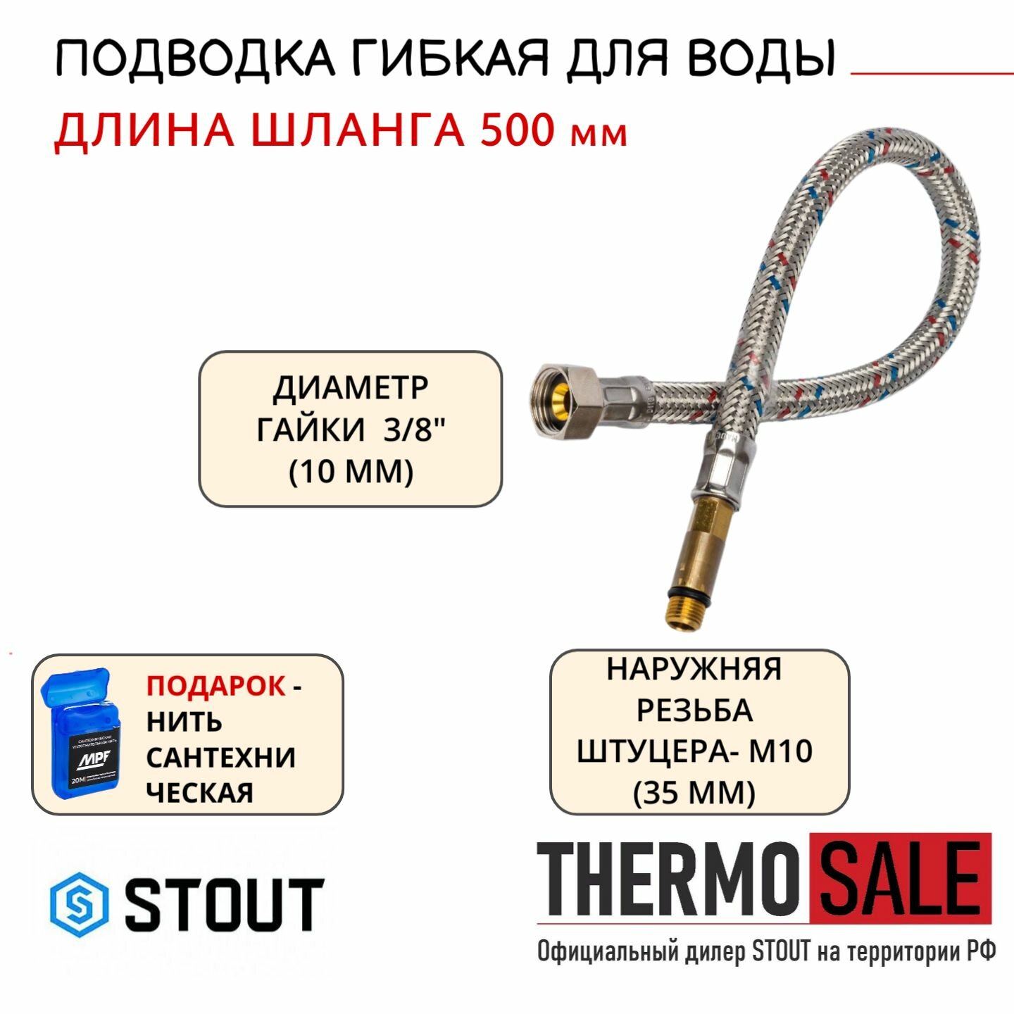 SHF-0036-351010 STOUT Гибкая подводка для воды M 10 (35мм) х ВР 3/8, длина 500 мм