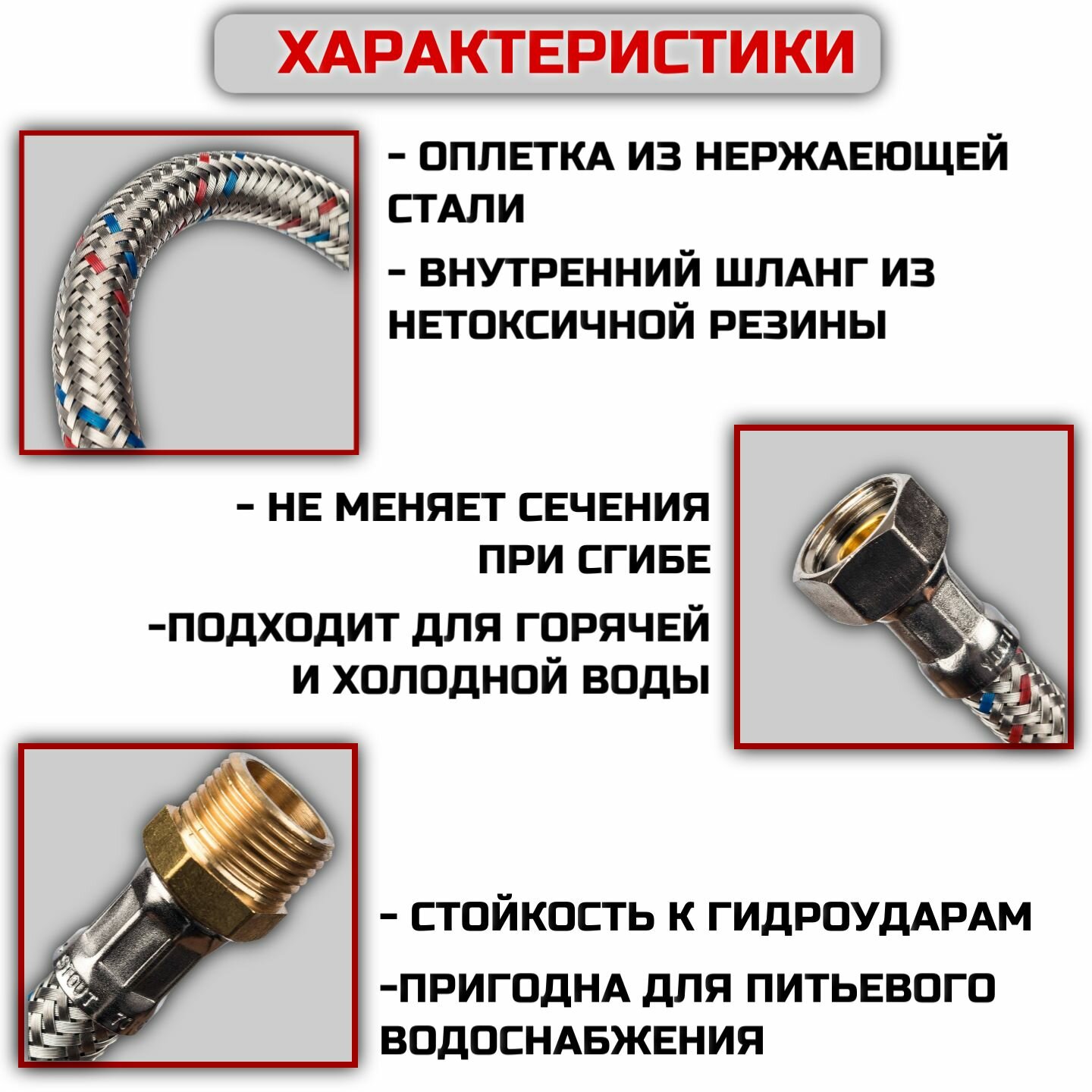 Гибкая подводка для воды НР 3/8 х ВР 3/8, длина 400 мм Нить сантехническая