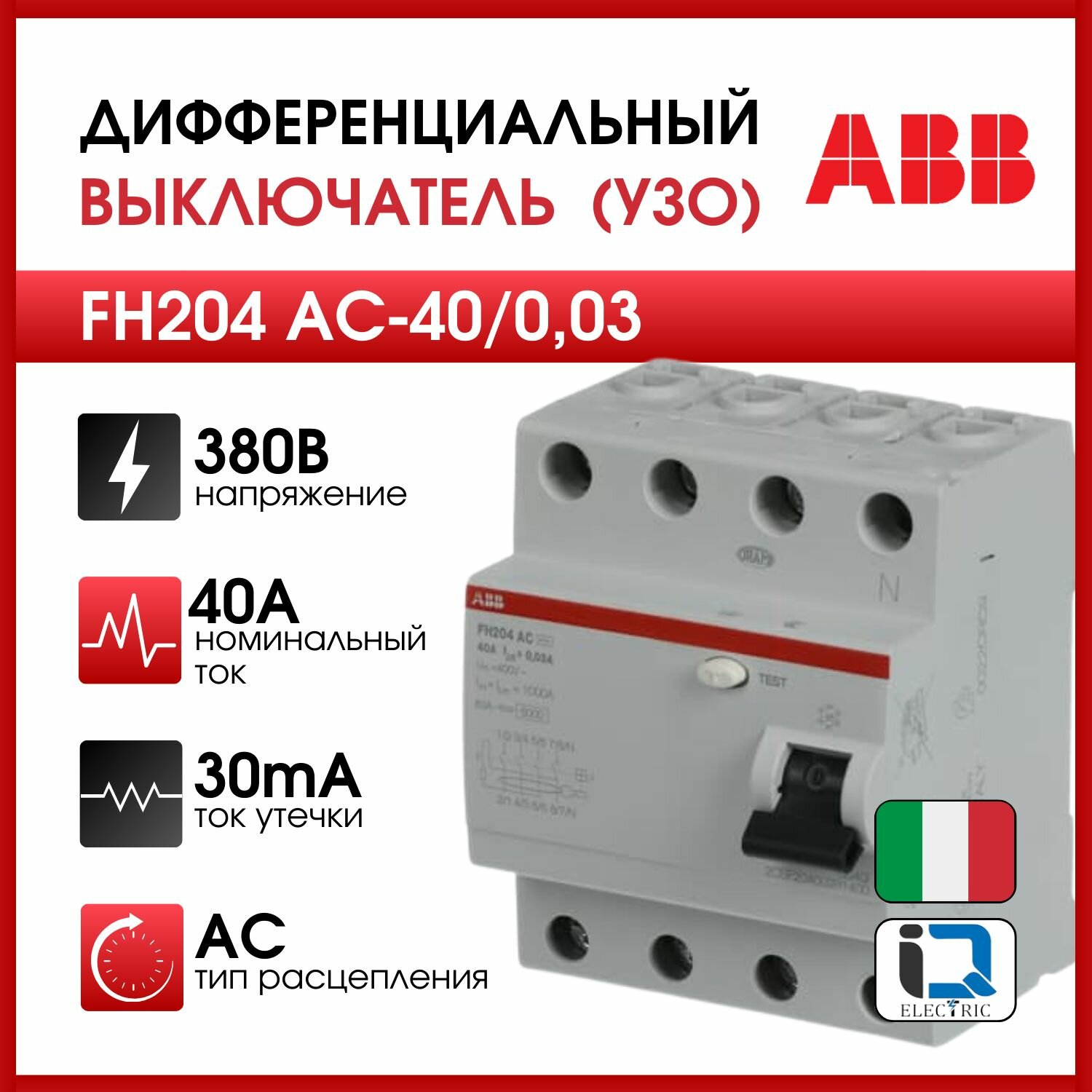 УЗО 4P 40А 30мА 1кА FH204AC (ABB), арт. 2CSF204004R1400