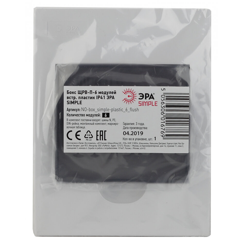 Бокс ЩРВ-П-6 мод. встраив. пластик IP41 SIMPLE NO-box_simple-plastic_6_flush | код. Б0041510 | Эра ( 1шт. )