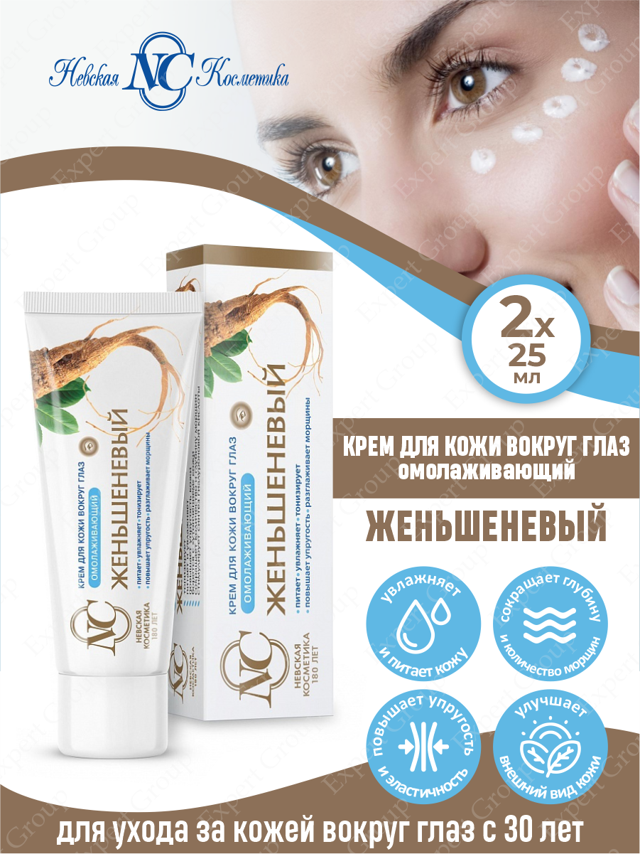 Крем для кожи вокруг глаз Невская Косметика "Женьшеневый", омолаживающий, 25 мл 3745551