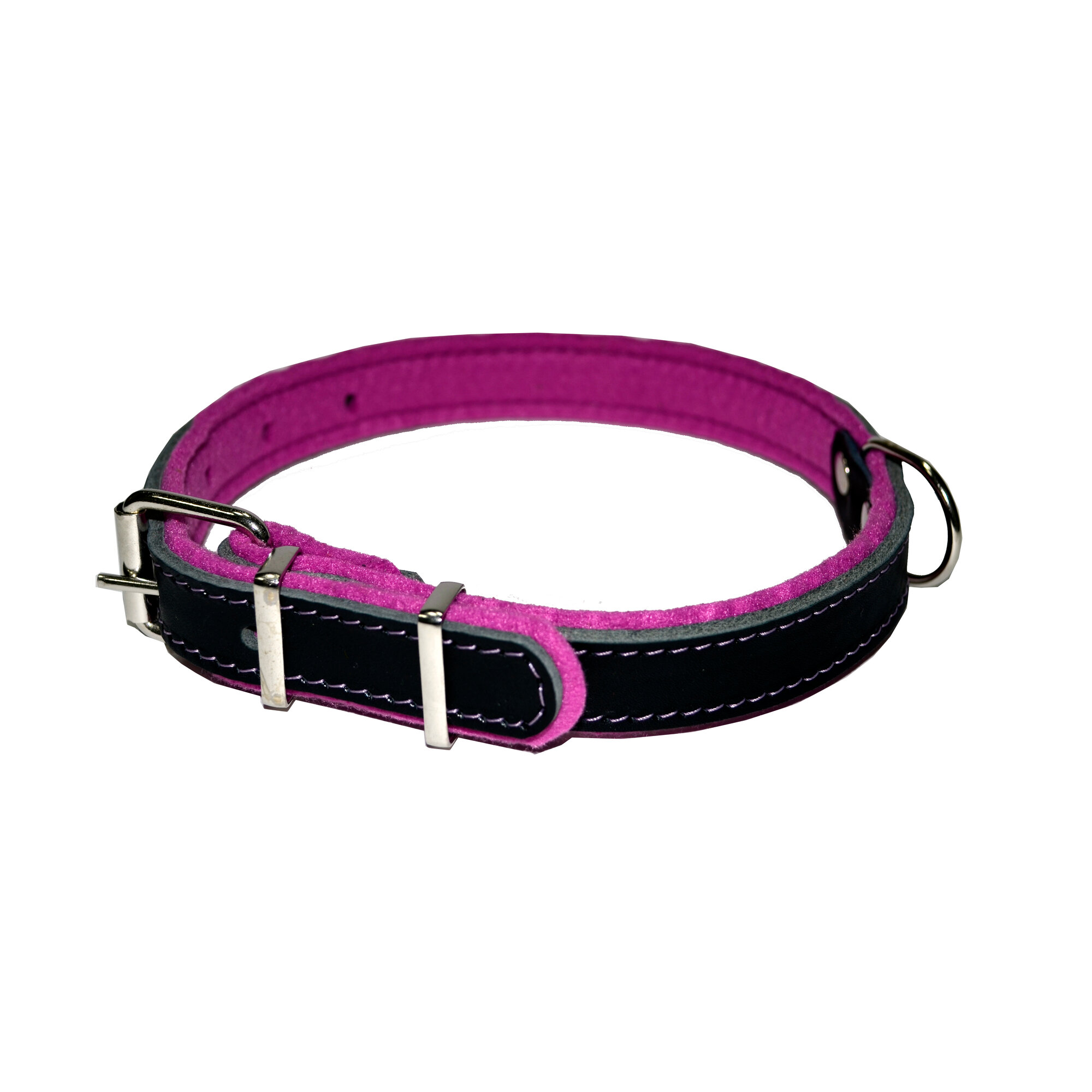 Ошейник Аркон кожаный с подкладом "Фетр", 1,6 см, ОШ 20-28 см, чёрный/фиолетовый