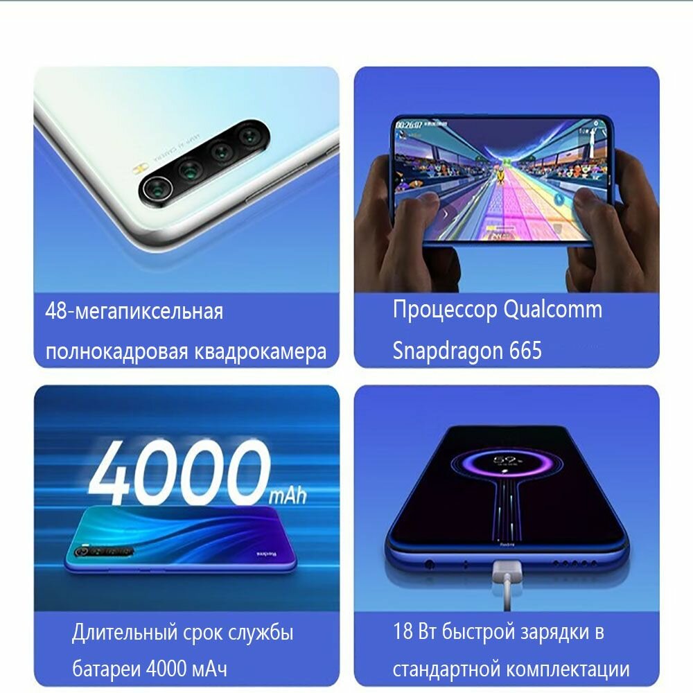 Смартфон Xiaomi Redmi Note 8 4/64 ГБ CN, Dual nano SIM, нептуновый синий