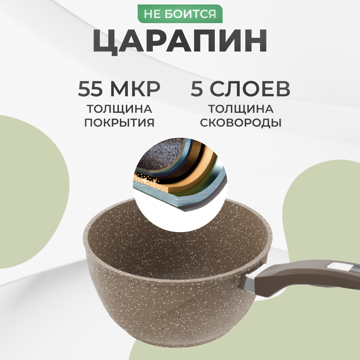 Ковш Мечта 1.2 л Гранит с антипригарным покрытием с несъемной ручкой и крышкой, НЕ индукционная