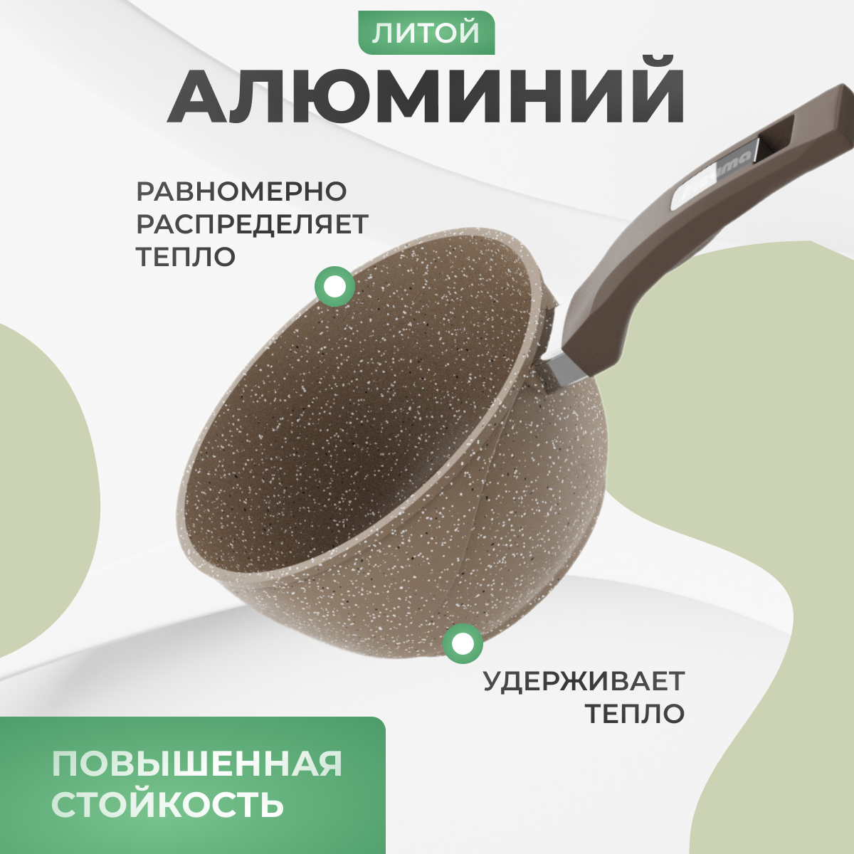 Ковш "Мечта" 1.7л Гранит с антипригарным покрытием с несъемной ручкой и крышкой, можно мыть в посудомоечной машине
