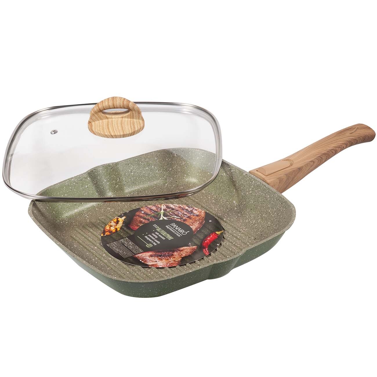 Сковорода-гриль Panairo "OliverStone Max" c крышкой и съемной ручкой soft-touch 27*27 см интересное: