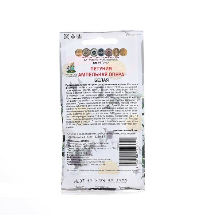 Семена Петунии ампельной поиск Опера Белая 5 шт интересное: