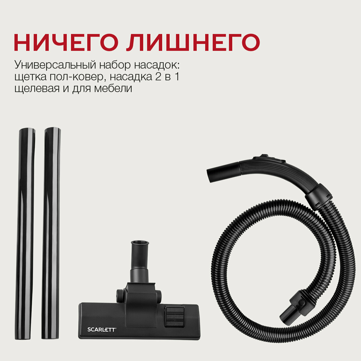 Пылесос SCARLETT SC-VC80B63 с пылесборником, 1600 Вт, мощность всасывания 360 Вт, красный