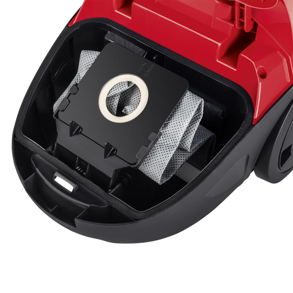 | Плюсы: | Многоразовый мешок для пыли, шнур сматывается автоматически, вертикальное хранение. |