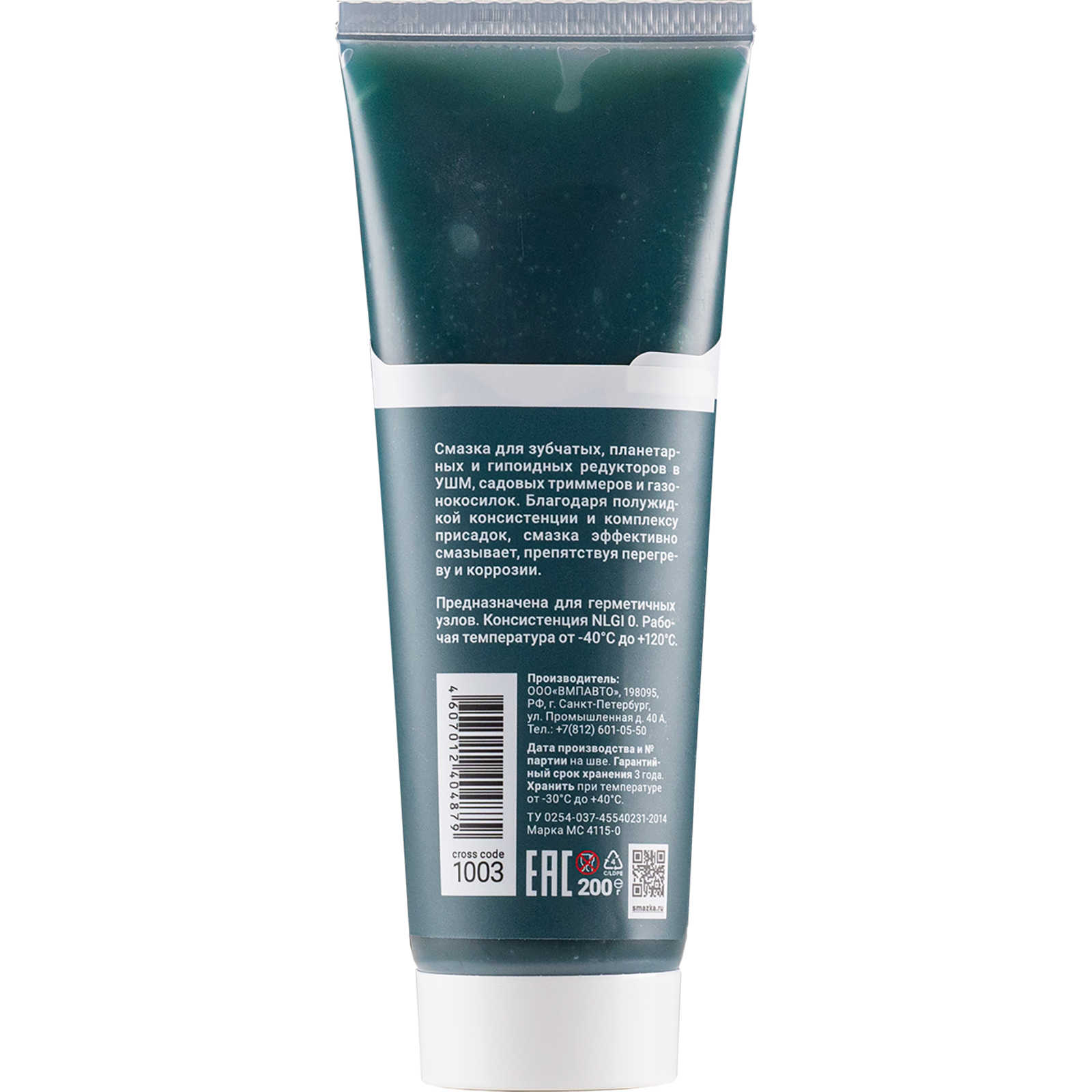 Смазка литиевая 200гр - МС 4115-0 для электроинструмента, препятствует заеданию и ржавлению зубчатых редукторов в УШМ,перфораторах, бензопилах, NLGI 0, зеленая, тюбик