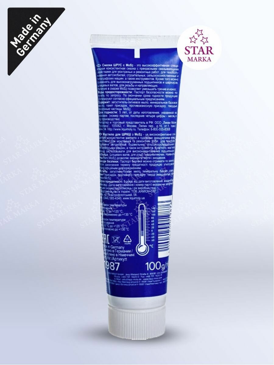 Смазка ШРУС с дисульфидом молибдена LM 47 Langzeitfett + MoS2 (0,1кг) 1987 LIQUI MOLY 1987 | цена за 1 шт