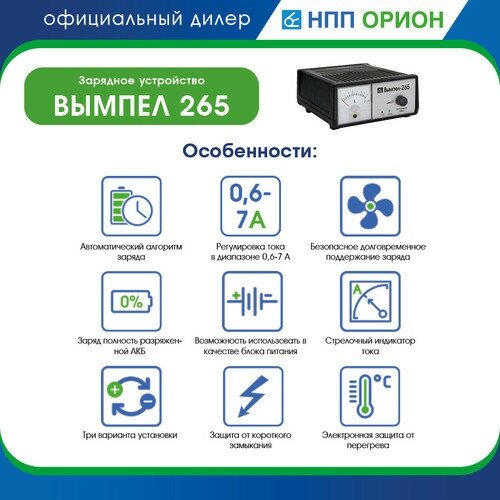 Зарядное Устройство Вымпел Нпп Орион 265 Автомат, 07а, 12в, Стрелочный Амперметр НПП Орион арт. 2049