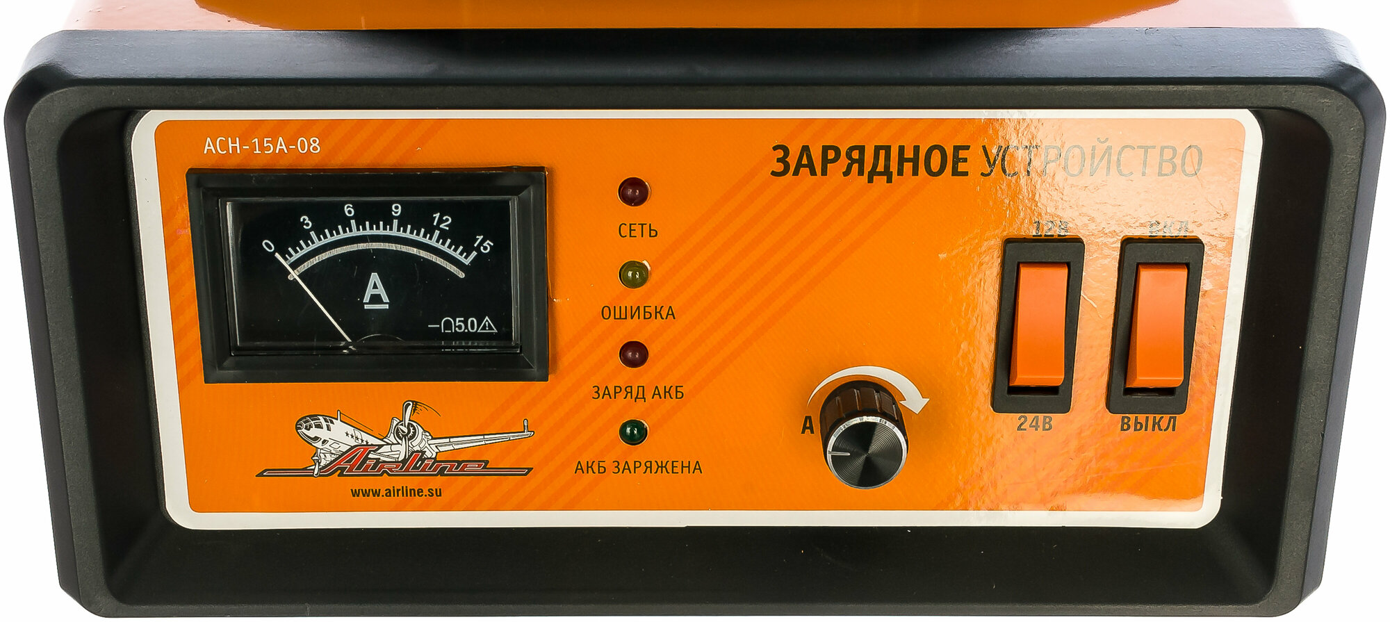 Зарядное устройство AIRLINE ACH-15A-08 0-15А 12В/24В амперметр ручная регул.зар. тока импульсное