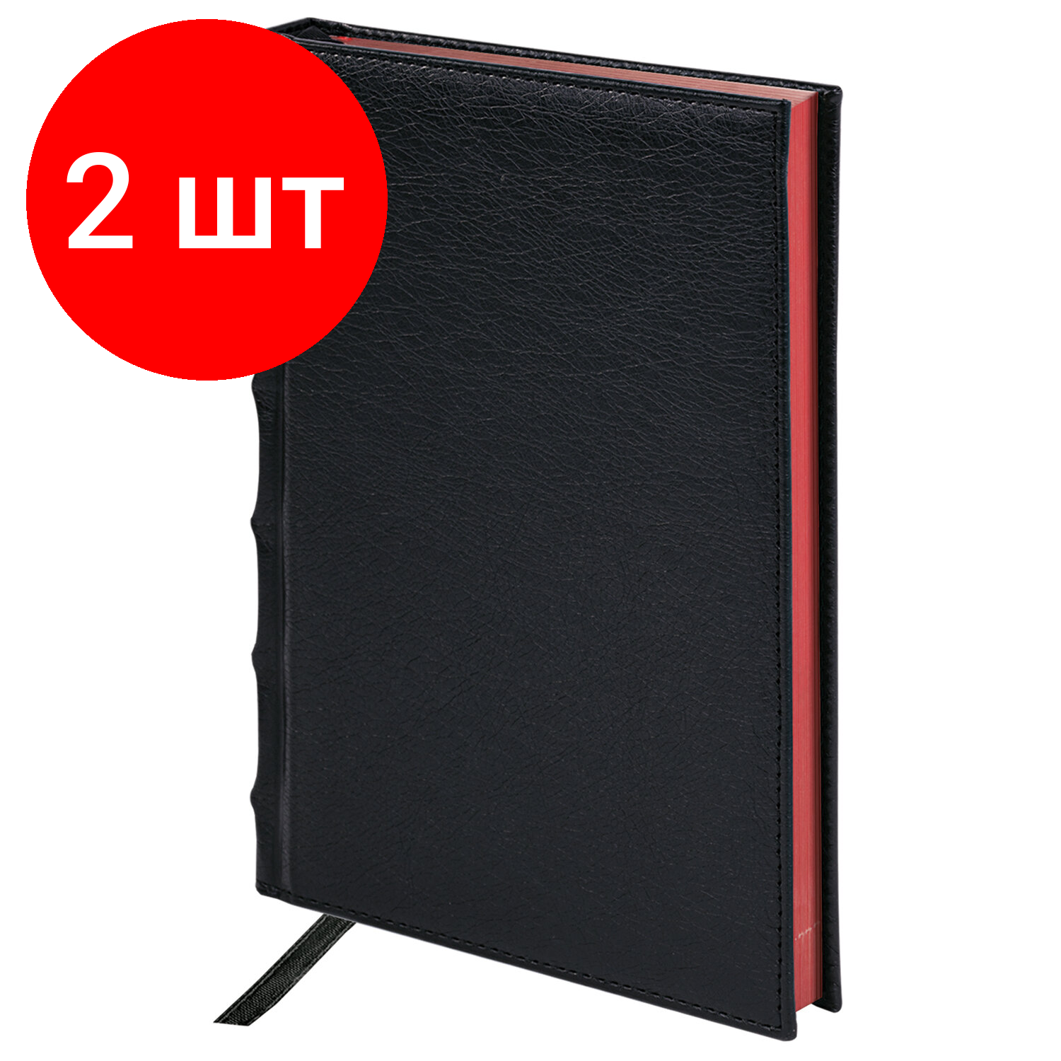 Купить Комплект 2 шт, Ежедневник недатированный А5 138х213 мм BRAUBERG "Black Jack" под кожу, 160 л., черный, 123844
