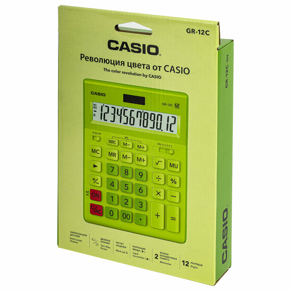 Калькулятор настольный Casio GR-12С-GN (210х155 мм), 12 разрядов, двойное питание, салатовый (GR-12C-GN-W-EP)
