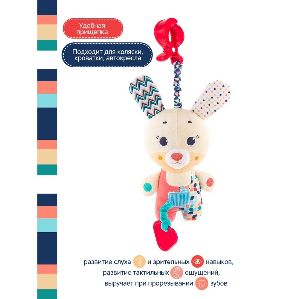 Подвесная игрушка Happy Snail Зайка Лаки (19HSС13RB) бежевый/красный/синий