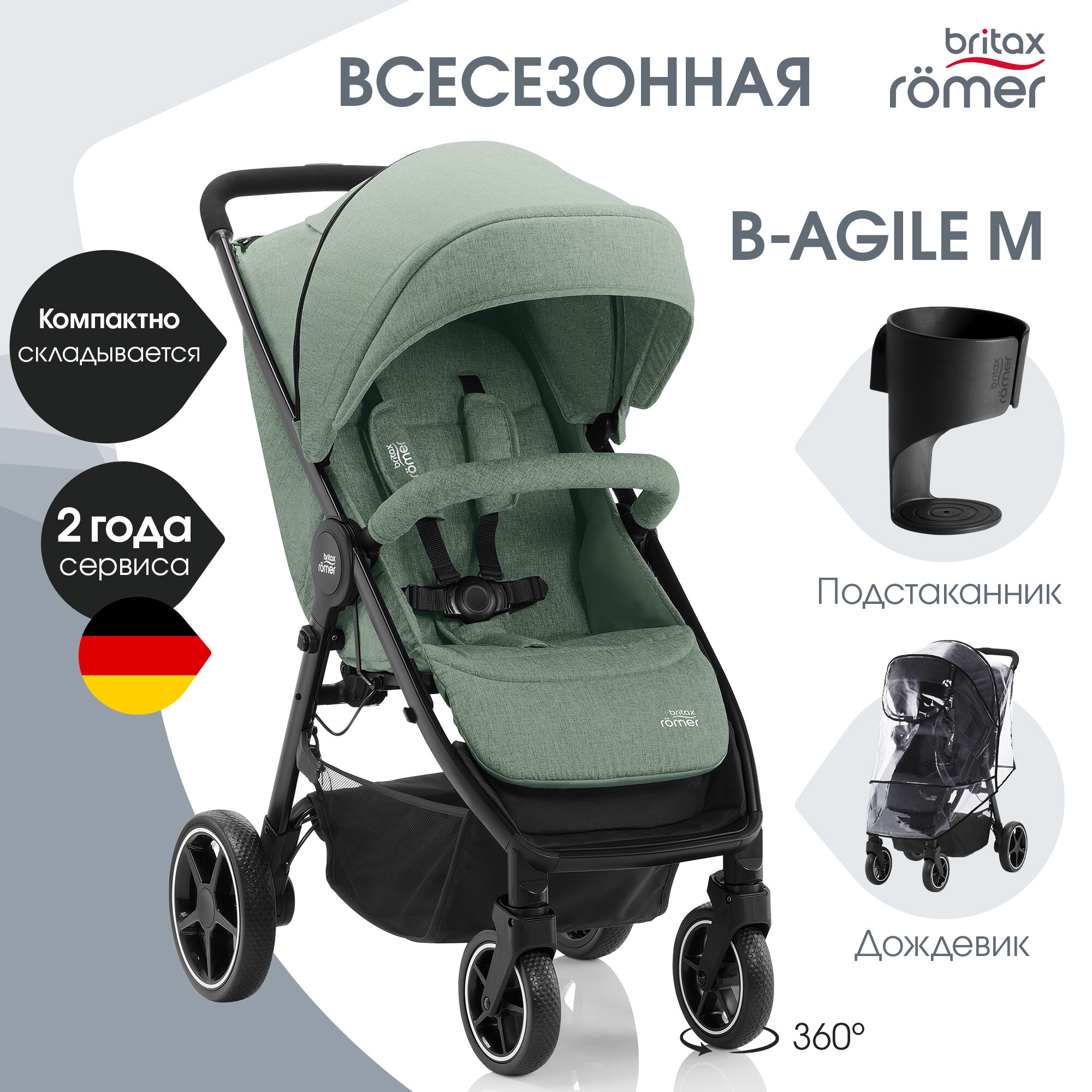 СохранитьДетская прогулочная коляска Britax Roemer B-Agile M Jade Green интересное: