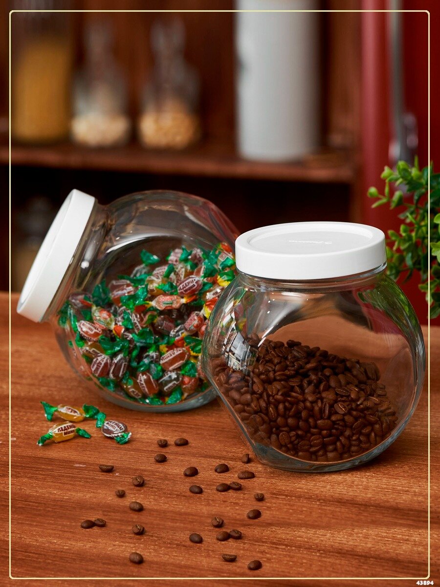 Комплект 2 штук, Банка с крышкой белла 2140 мл (белая крышка) (43994SLB)