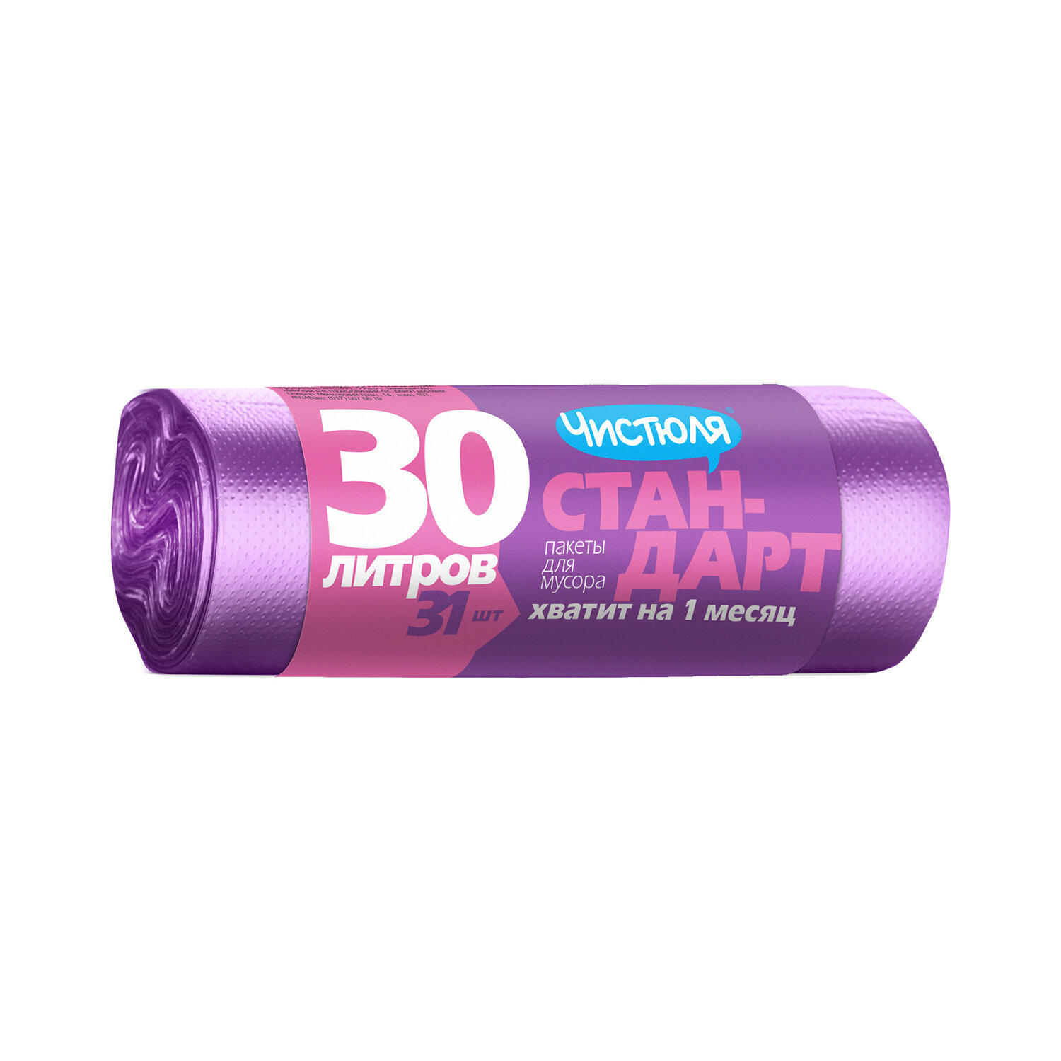 Мешки для мусора Чистюля Стандарт (МС021) 30 л, 31 шт., 1 упак., фиолетовый
