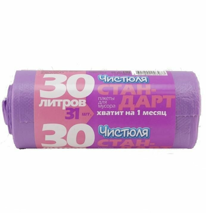 Мешки для мусора Чистюля Стандарт (МС021) 30 л, 31 шт., фиолетовый