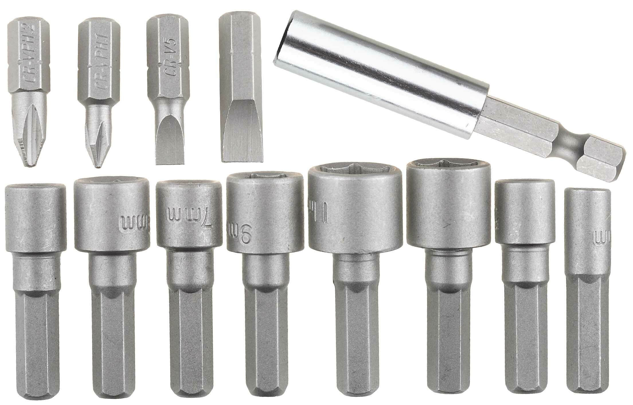 Набор бит и торцовых головок STAYER 13 шт., Cr-V